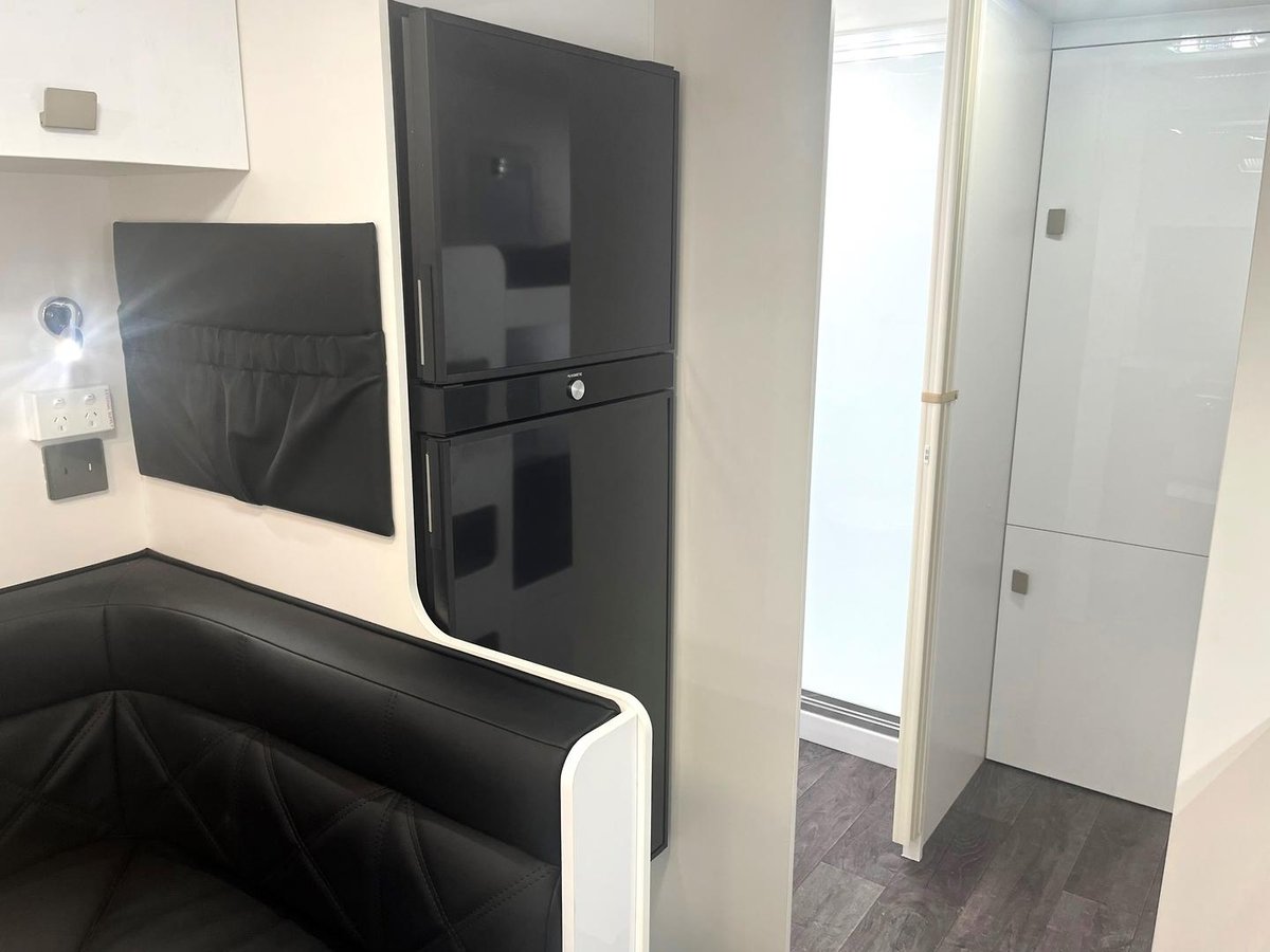 - 3-Way Fridge: Operates on gas, 12V, or 240V for flexible cooling.