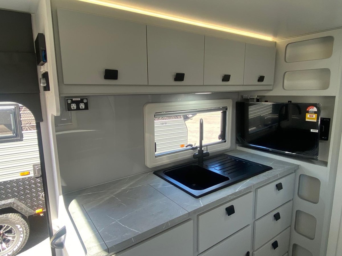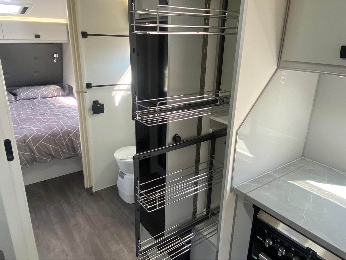 • 2 x 110L fresh water tanks + 1 x 110L grey water tank – Enjoy longer stays with generous water capacity.