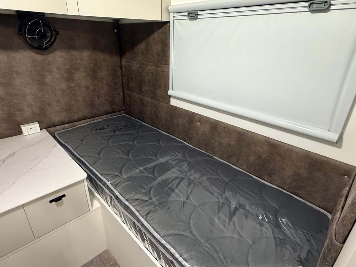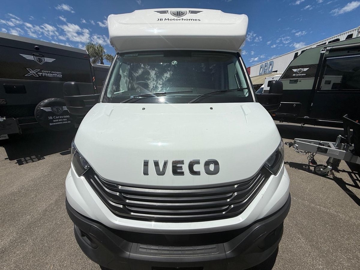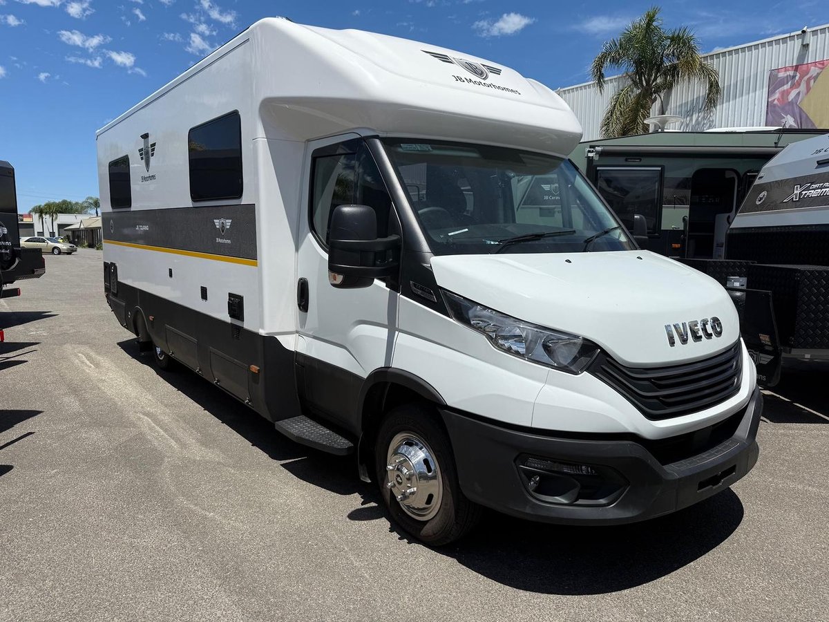 Get ready to experience the freedom of the open road like never before with our latest innovation in touring motorhomes. JB Touring is not just a motorhome – it’s a complete travel experience, now available! Built on a durable Iveco Daily 50 180 cab-chassis, this 7.9-meter long beauty boasts a powerful 3.0-litre turbo-diesel engine with 132kw and 430Nm, offering the perfect balance of power and efficiency. Designed for easy handling, it’s licensed for a standard car license with a GVM of 4495kg (upgradeable to 5200kg), making it an ideal choice for any adventurer. Crafted with premium materials, the JB Touring features full composite fibreglass construction – including seamless one-piece panels for the floor, walls, and roof – ensuring a smooth, modern profile that is as stylish as it is durable. Off-grid camping? No problem! The JB Touring comes standard with a 48V EcoFlow setup, featuring two 2kW lithium batteries, 3600W inverter, and 600W rooftop solar panels, providing all the energy you need to explore off the beaten path. With 200L fresh water and 75L grey water capacity, you’ll have all the amenities you need, wherever you go. Step inside, and you’ll find a luxury, couple-friendly layout that combines comfort and functionality. The queen-sized bed (with a pillowtop mattress and generous under-bed storage) and spacious rear ensuite with a large shower and washing machine offer ultimate relaxation after a day of adventure. Prefer twin beds? We’ve got that too! Choose from a range of interior configurations, including a dinette/lounge area for ultimate flexibility. The kitchen is a dream for any cook, with a twin hob induction cooker, 224L fridge/freezer, microwave, and a sleek granite black kitchen sink. Entertain in style with two 24-inch Smart TVs, an audio system with six speakers, and enjoy the outdoors with a powered awning and picnic table. The motorhome also features genuine leather seating, soft-touch finishes, and premium European-style CNC furniture for that added touch of elegance. And for those who demand the best, the JB Touring offers a range of high-end features like leather-upholstered seating, sound-isolating felt-backed vinyl flooring, and multi-locking cabinetry systems. Ready to hit the road in style? The JB Touring Motorhome is your ticket to the ultimate luxury adventure! Contact us today! Interstate freight and finance available upon request.
