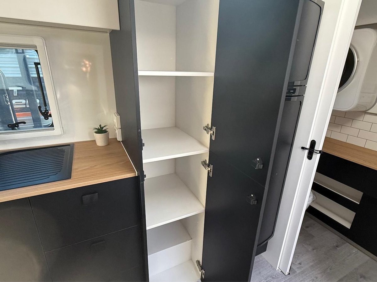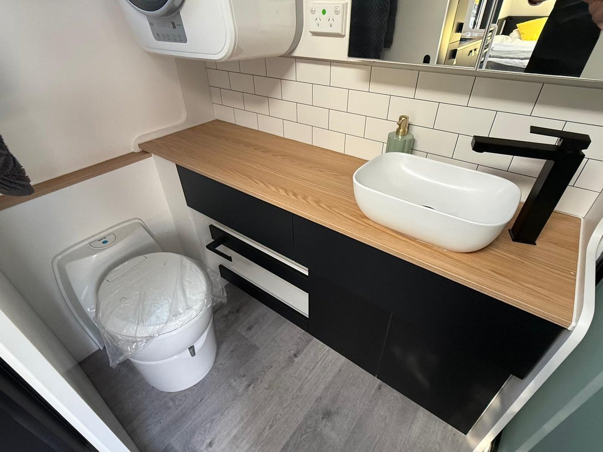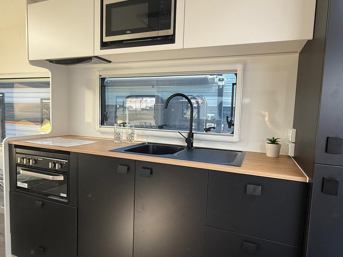 Eat like a king on and off-grid with a well-equipped kitchen and an external picnic nook with twin tubs supported by a capable self-replenishing lithium battery system.