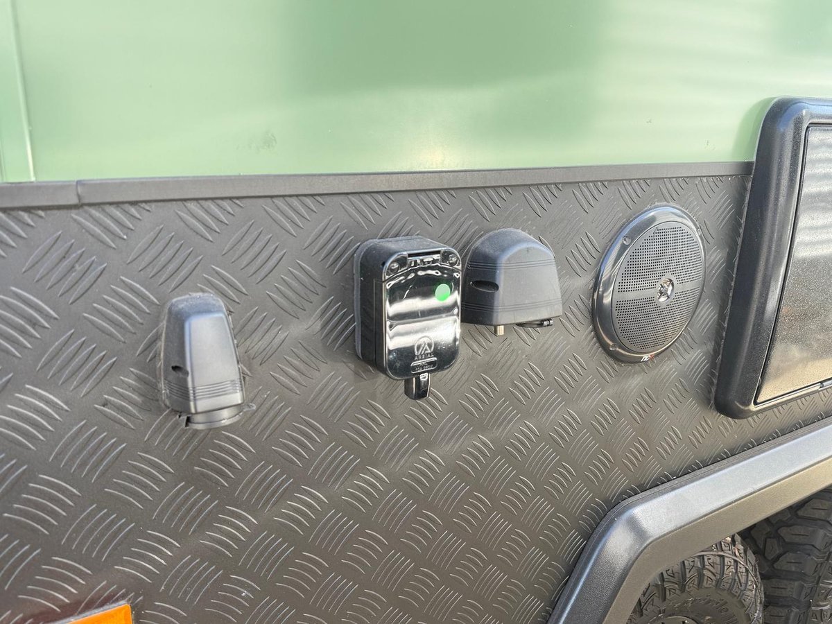 Finished in Matt Green Alucobond smooth panels with black matte checker plate, this van turns heads and backs it up with serious capability.