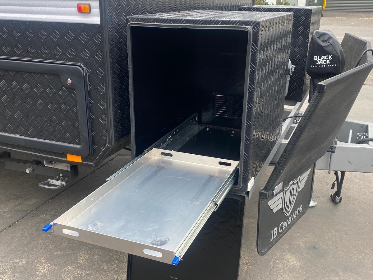 - 190L Dometic compressor fridge – Store fresh food and drinks for days with a fridge that thrives in the heat.